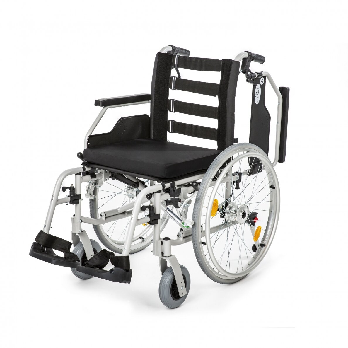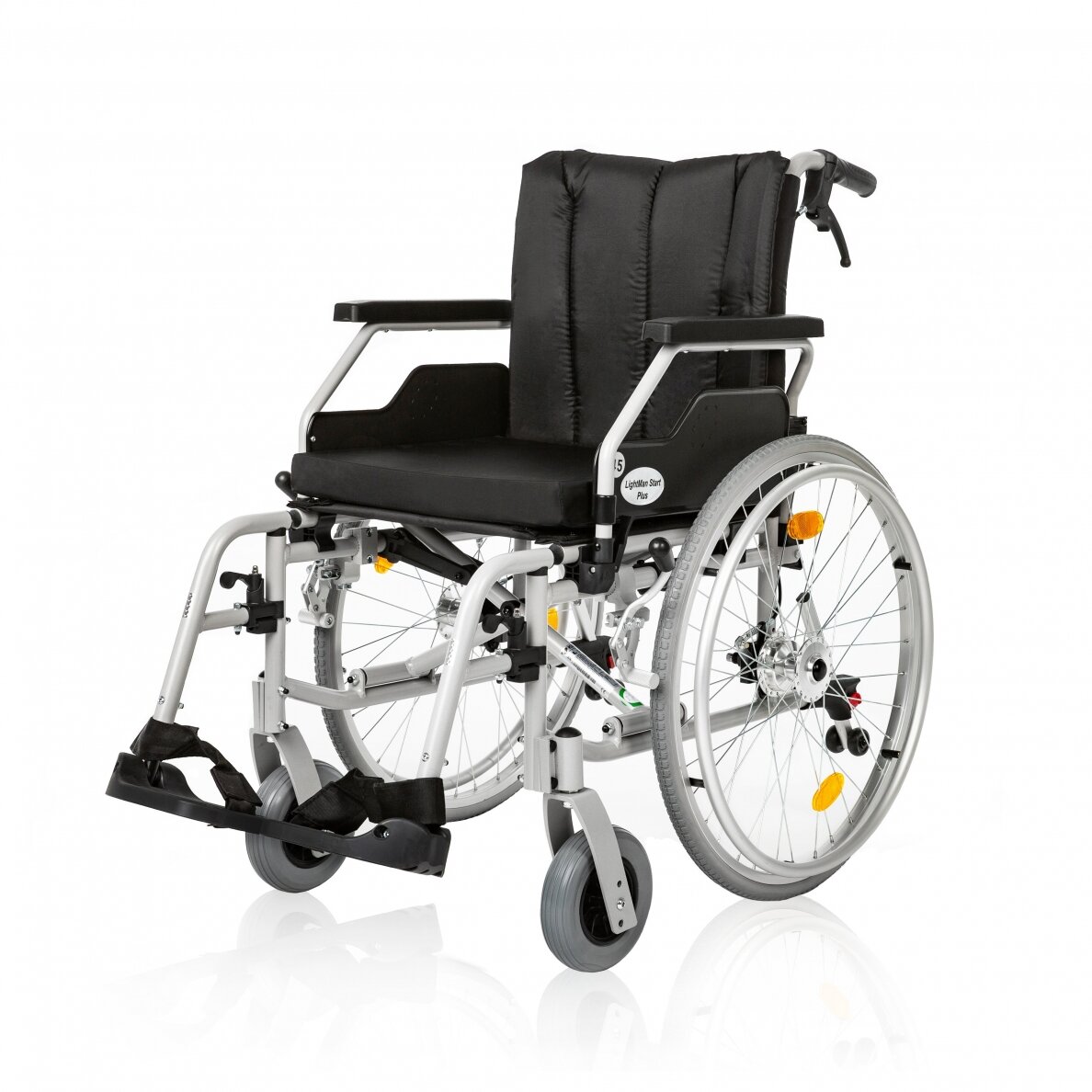 Universalus, patikimos konstrukcijos lengvo lydinio neįgaliojo vežimėlis LIGHTMAN START PLUS skirtas aktyviems naudotojams iki 125 kg svorio, turintiems laikinų ar ilgalaikių mobilumo problemų. Vežimėlį taip pat gali varyti palydovas, naudodamasis stūmimo rankenomis, sumontuotomis virš atlošo. Šis modelis turi būgninius stabdžius, leidžiančius lydinčiam asmeniui stabdyti stumiamą vežimėlį, bei gamykloje sumontuotą apsaugą nuo apsivertimo, užtikrintai sumažinančią tokios galimybės riziką, ypač, kai važiuojama įkalne ar nelygiu keliu. Vežimėlio sėdynės plotis yra 45 cm. Šios judėjimo priemonės rėmas – iš tvirto aliuminio, kitos dalys – iš plastiko, apmušalas – nailoninis. Vežimėlis lengvai suskleidžiamas, išardomas be įrankių, pritaikytas gabenimui. Vežimėlio sėdynė ir atlošas paminkštinti, sėdynės aukštis (kaip ir svorio centras) yra reguliuojami pagal naudotojo poreikius bei įgūdžius. Porankiai atlenkiami nuspaudžiant plastikinius laikiklius, taip užtikrinant patogų persėdimą iš vežimėlio ant kito paviršiaus iš šono. Nuimami, pasukami į šonus, reguliuojamo aukščio pakojai su nuimamu blauzdų palaikymo dirželiu – patogiam persėdimui iš priekinės vežimėlio pusės. Greitos fiksacijos galiniai ratai iš minkštos medžiagos – monolitiniai (nepripučiami), nuimami mygtuko paspaudimu. Priekinių ratų dydis – 17,5×4,5 cm, galinių ratų – 61×35 cm. Rimties stabdžiai – iš abiejų vežimėlio pusių. Stovėjimo stabdis privalo būti įjungtas sėdantis į vėžimėlį ar keliantis iš jo, tačiau juo negalima mažinti greičio.